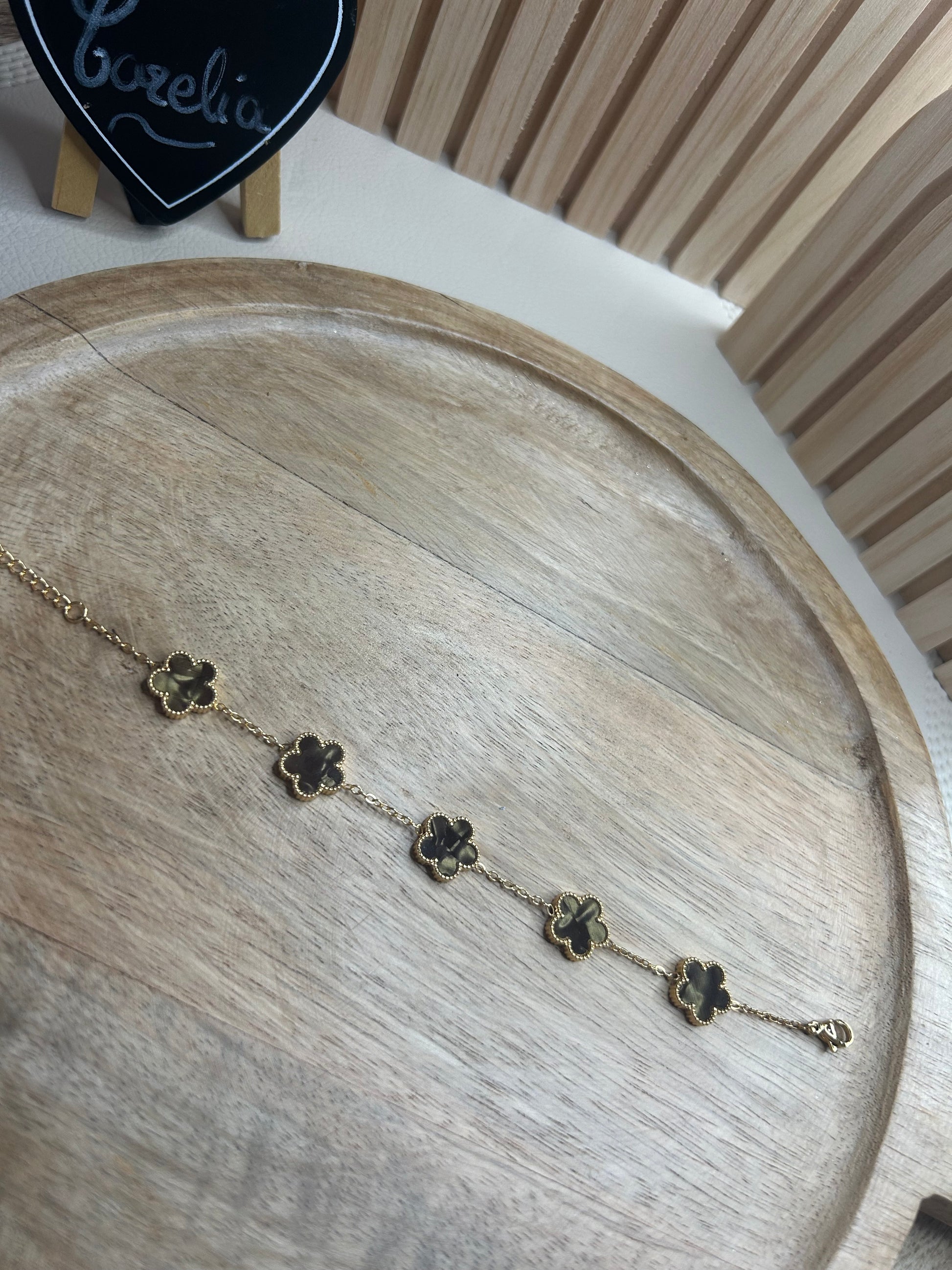 Élégance et fraîcheur réunies. Acier inoxydable brillant, orné de 5 délicates fleurs marron pour une touche moderne et délicate. Le bijou idéal pour sublimer chaque jour votre style.