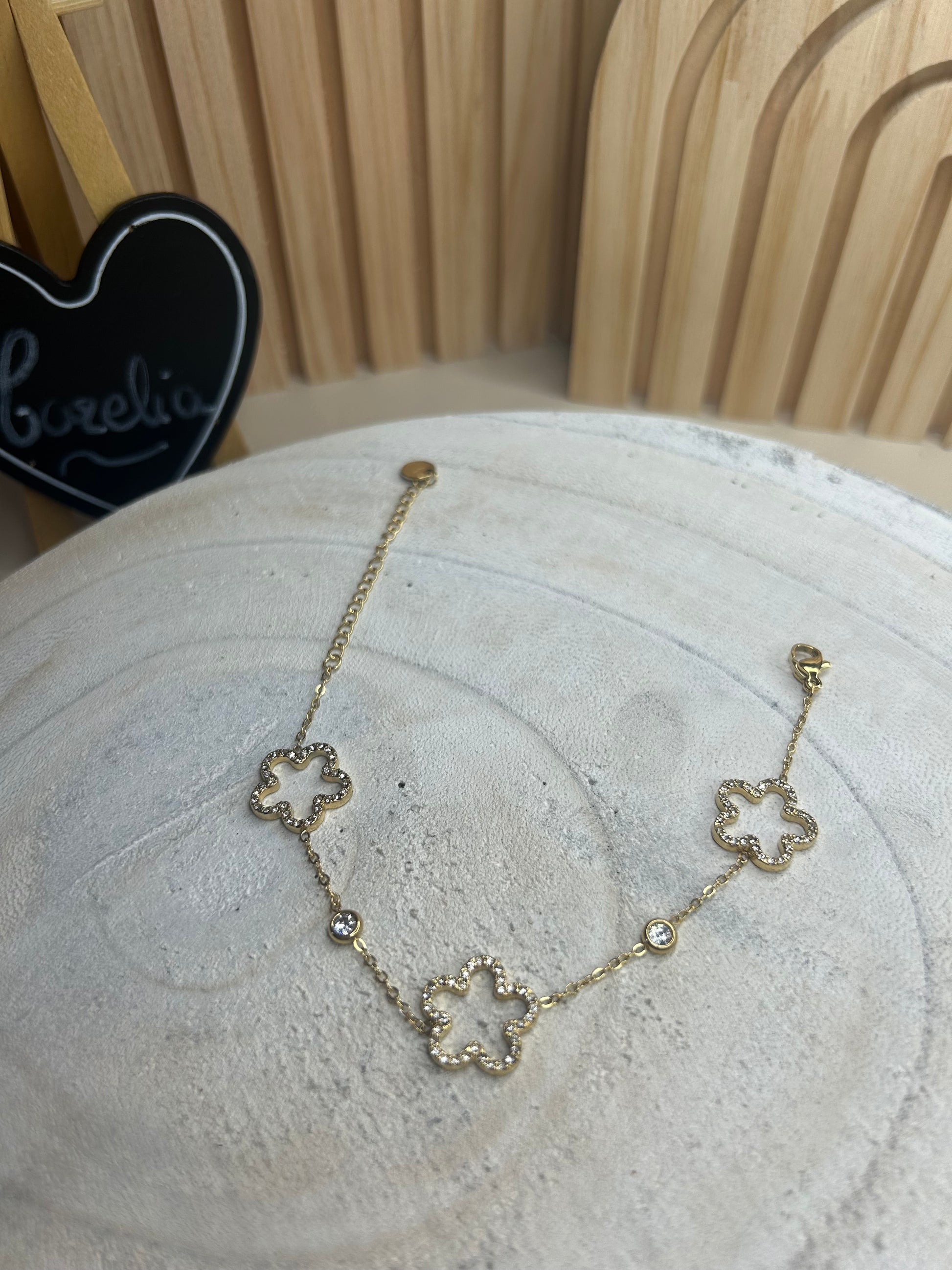 Le bracelet Magnolia : doré fleurs et strass – Acier inoxydable