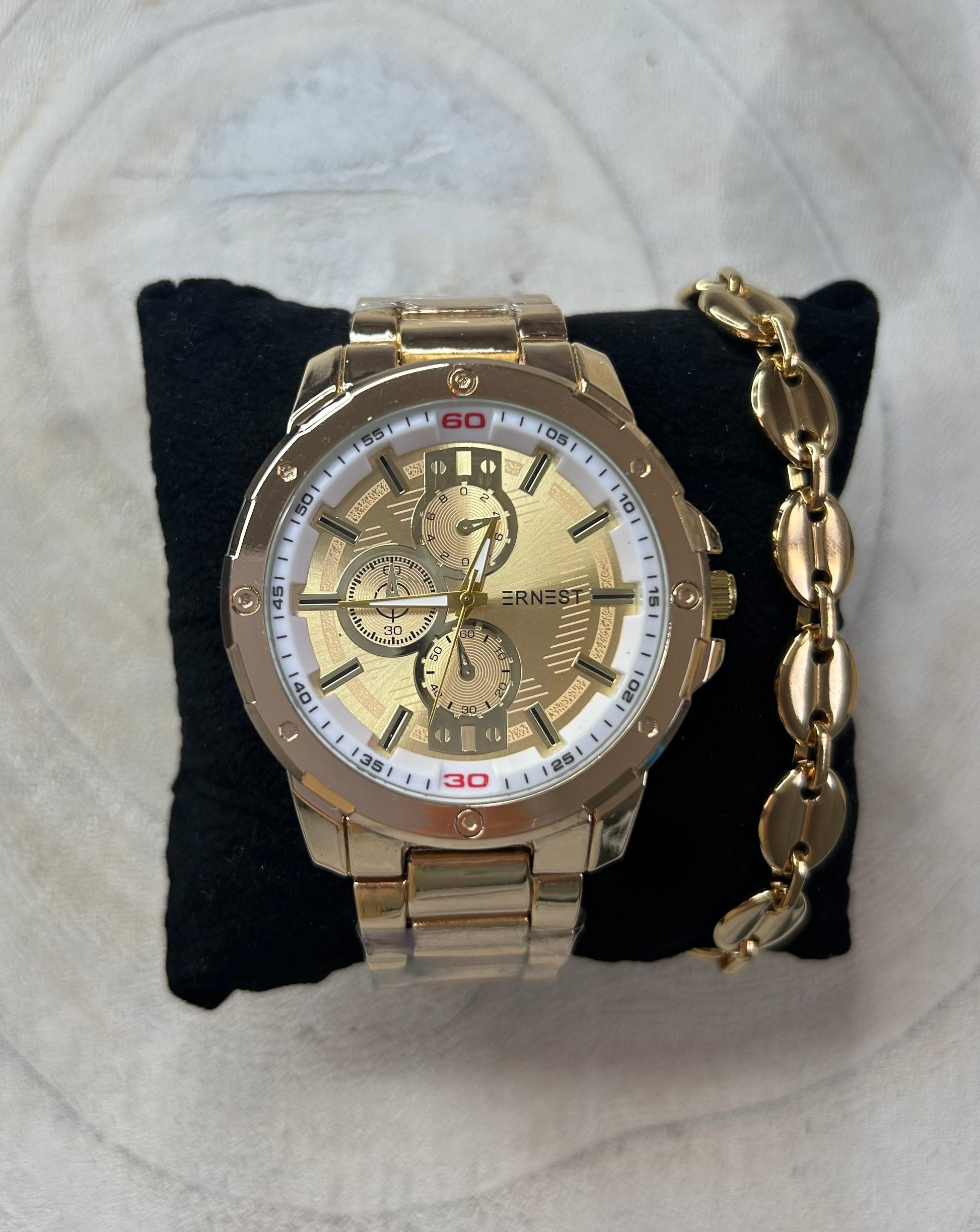 Coffret Homme – Montre Dorée & Gourmette Grain de Café