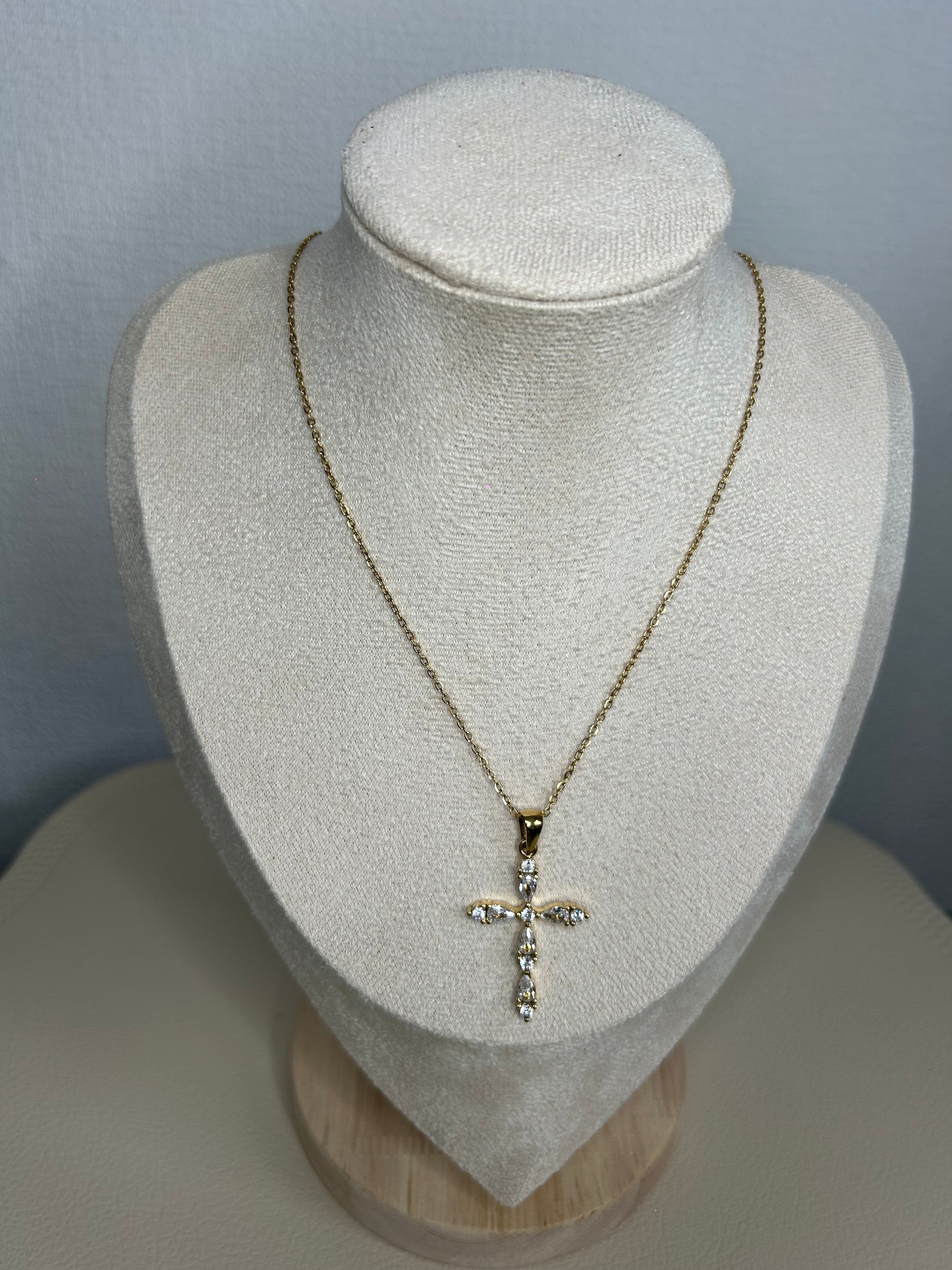 Collier croix en strass – Acier inoxydable doré