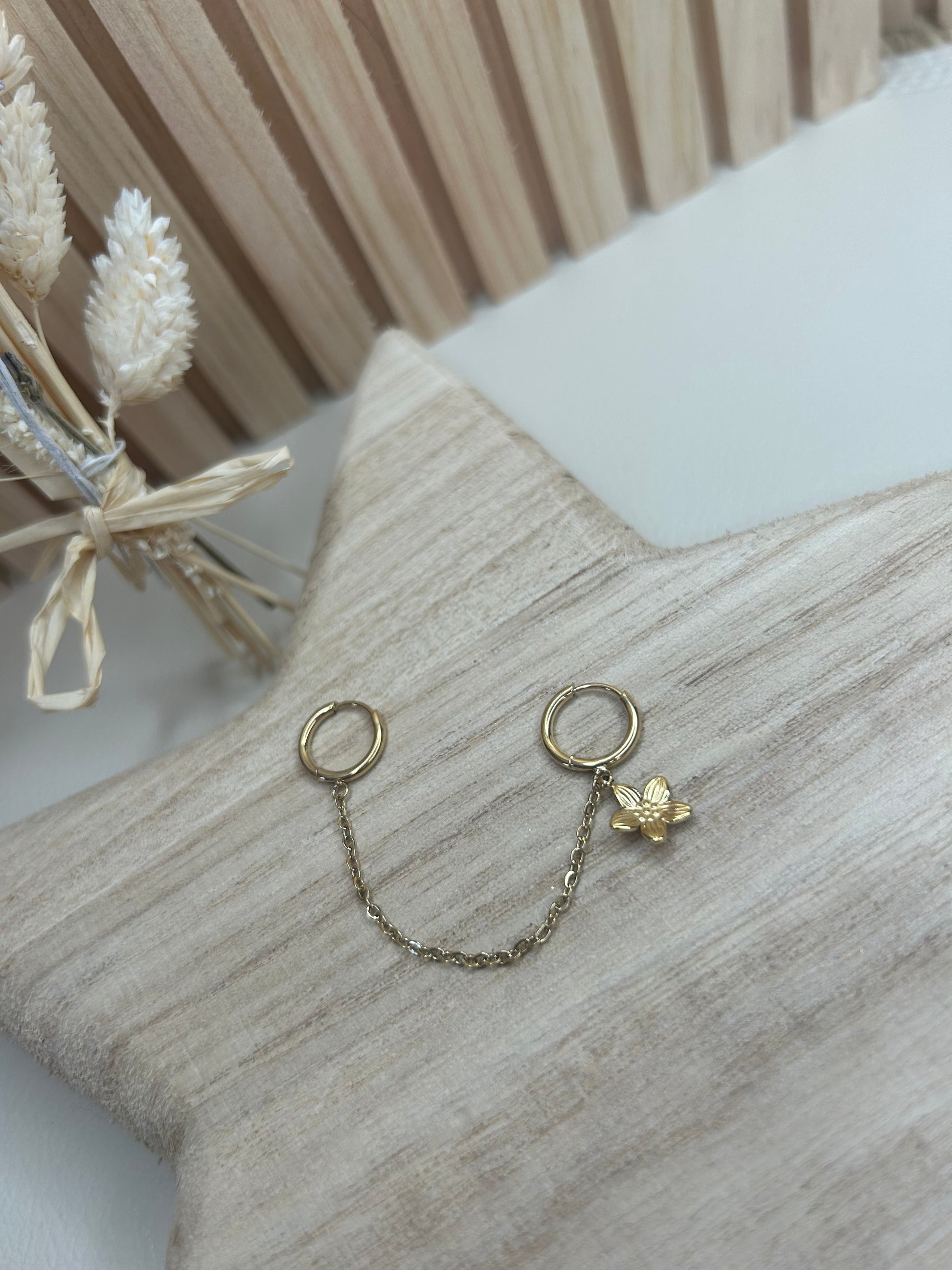 Mono boucle Jacky - en acier inoxydable doré avec motif fleur