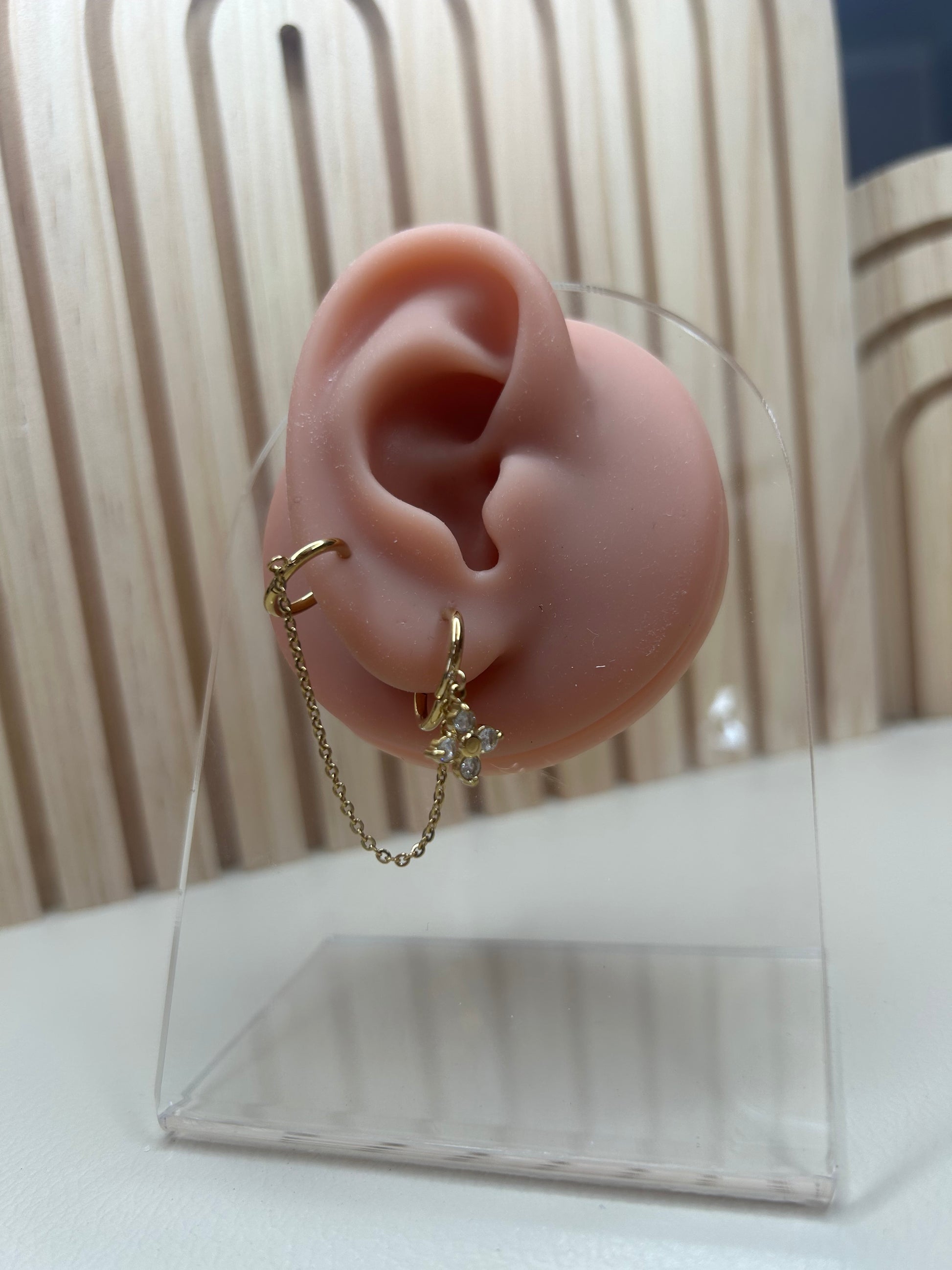 Élégante et raffinée, cette mono boucle d’oreille est conçue en acier inoxydable chirurgical doré, offrant à la fois confort et durabilité. Son motif délicat en forme de fleur, serti de strass étincelants.