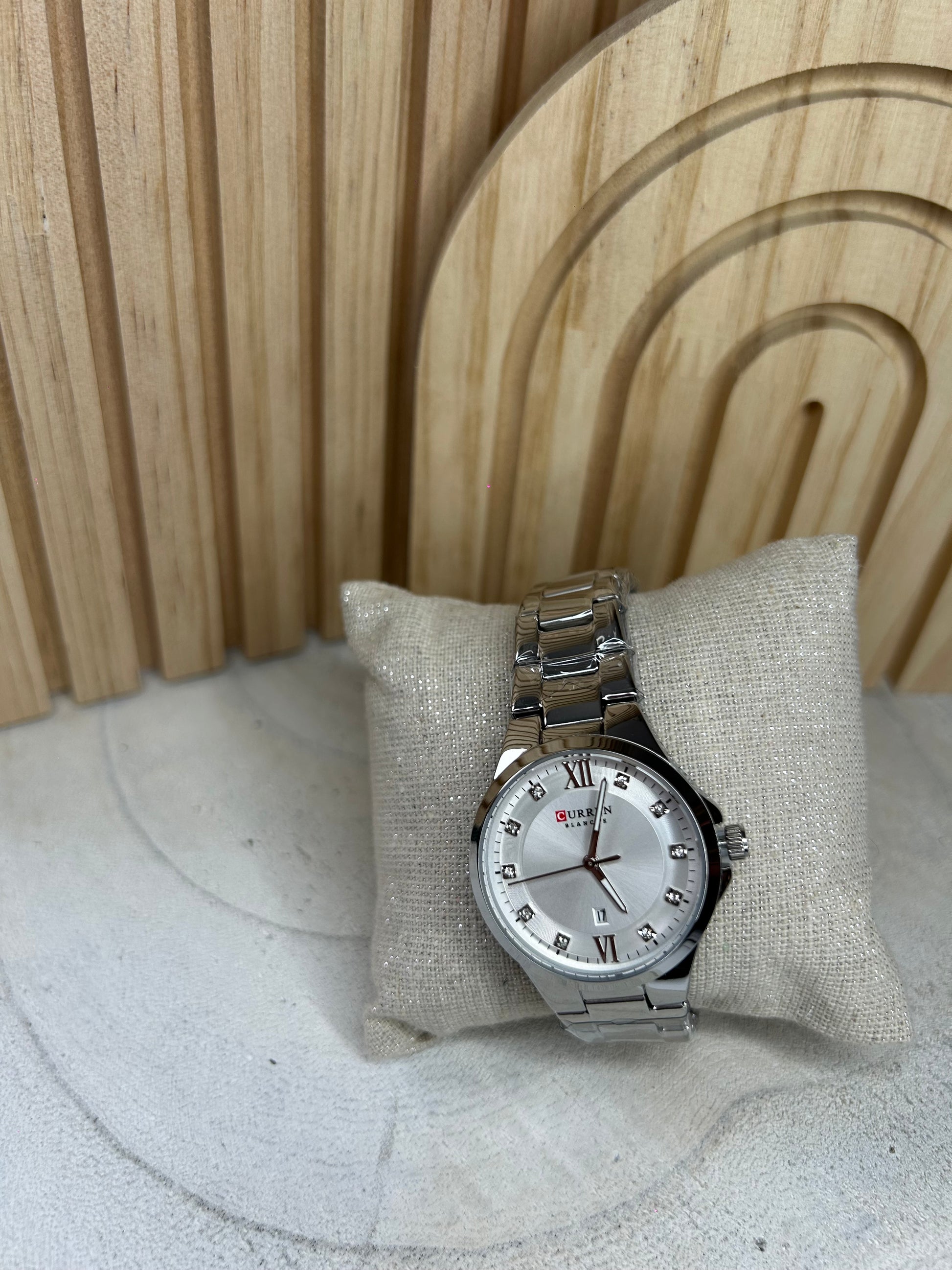 Sobre et élégante, cette montre argentée pour femme séduit par son design épuré. Son bracelet en acier et son cadran blanc minimaliste apportent une touche de raffinement à votre poignet, idéale pour un style chic au quotidien