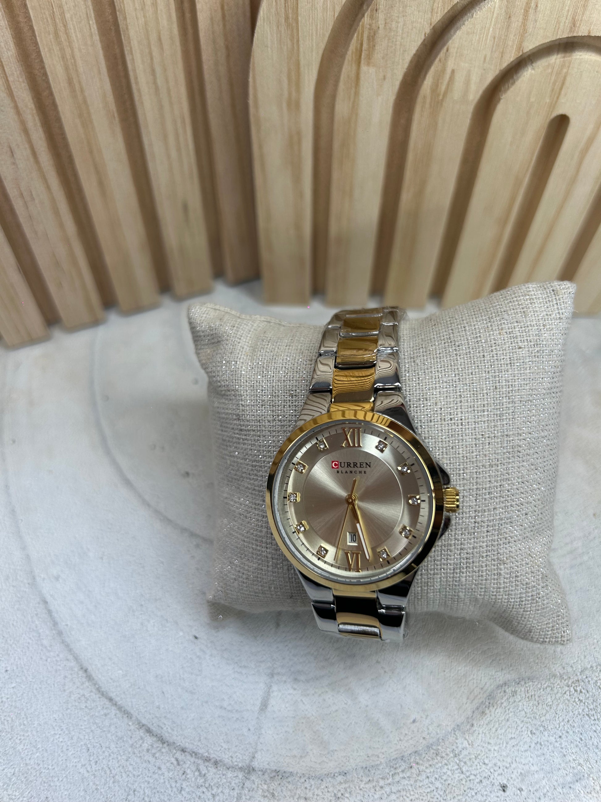 Montre Femme Bicolore – Fond Doré